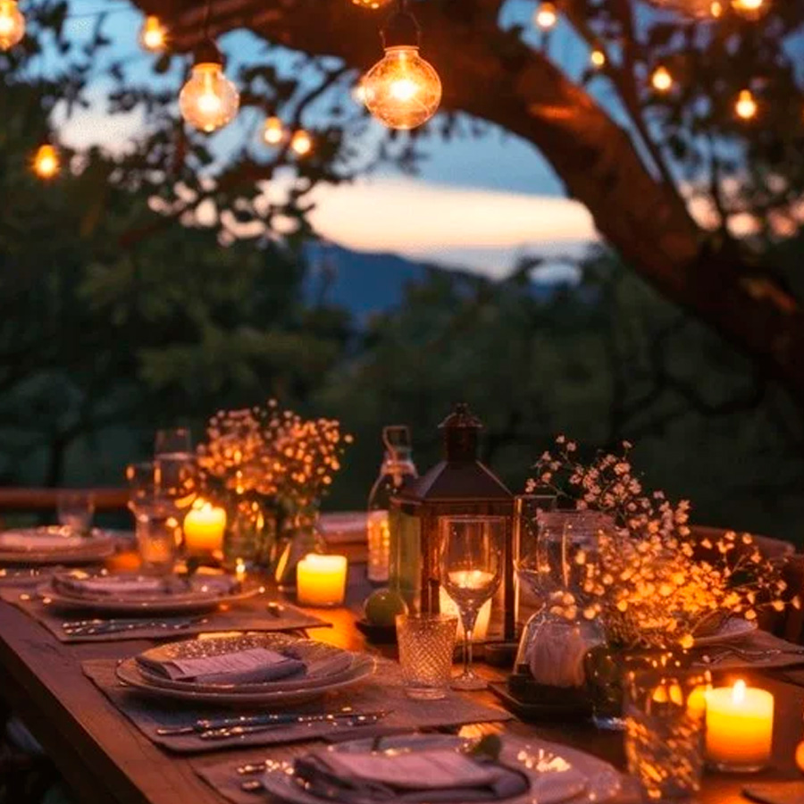 • Menú ligero y elegante servido en restaurante o pérgola exterior.
